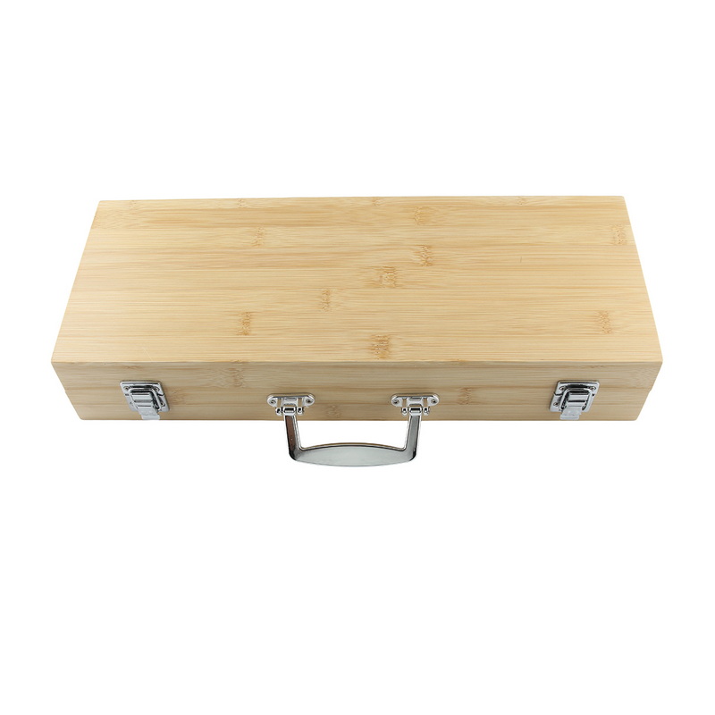 Size | 1 x spatula : 40*9cm 1 x tong : 36.5*2.5cm 1 x fork : 37*3.5cm 1 x knife : 38*2.8cm 1x silicone brush : 38*4cm 1x bamboo case : 43*17*7.5cm |