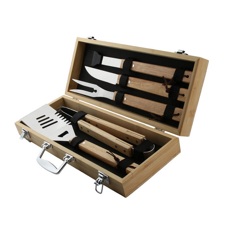 Premium 5 Piece BBQ Tool Set Customizable BBQ Tools Set with Bamboo Storage Case