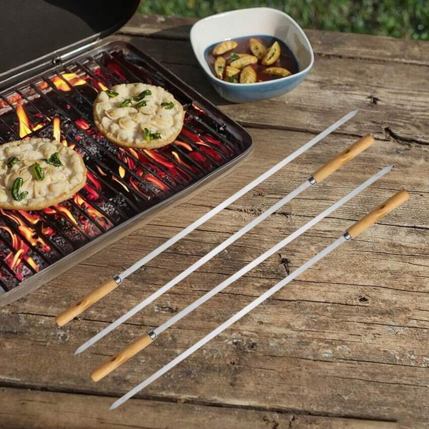 The stainless steel kebab skewers have the cold and sharp luster characteristic of metal, but through each contact with the charcoal fire and the kebabs, they are endowed with the warmth of fire. Different from traditional bamboo skewers, the stainless steel skewers are sturdy and durable, able to firmly hold various ingredients. Whether it's tender and juicy mutton, fatty and delicious pork, or crispy vegetables and tender seafood, they can all be firmly fixed by it. Its surface is smooth, and after roasting, it won't leave black marks like bamboo skewers, making it easier to clean and making each kebab experience more convenient and comfortable.